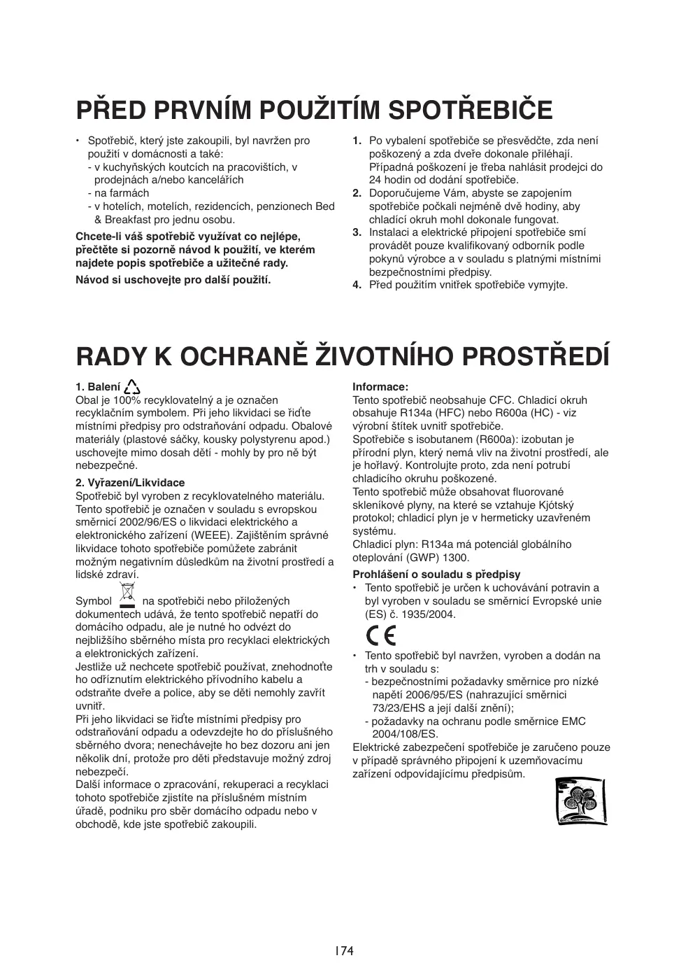 Informations : Cet appareil est sans CFC. Le circuit réfrigérant contient du R134a (HFC) ou du R600a (HC). Pour en savoir plus, consultez la plaquette signalétique située à l'intérieur de l'appareil. Pour les appareils à isobutane (R600a) : l'isobutane est un gaz naturel sans danger pour l'environnement, mais inflammable. Assurez-vous par conséquent que les tuyaux du circuit réfrigérant sont en parfait état. Ce produit peut contenir des gaz à effet de serre fluorés visés par le protocole de Kyoto ; le gaz réfrigérant est contenu à l'intérieur d'un circuit hermétique. Gaz réfrigérant : le R134a a un potentiel de réchauffement global (GWP) de 1300. Déclaration de conformité • Cet appareil est destiné à la conservation de produits alimentaires et est fabriqué conformément à la réglementation CE N° 1935/2004.