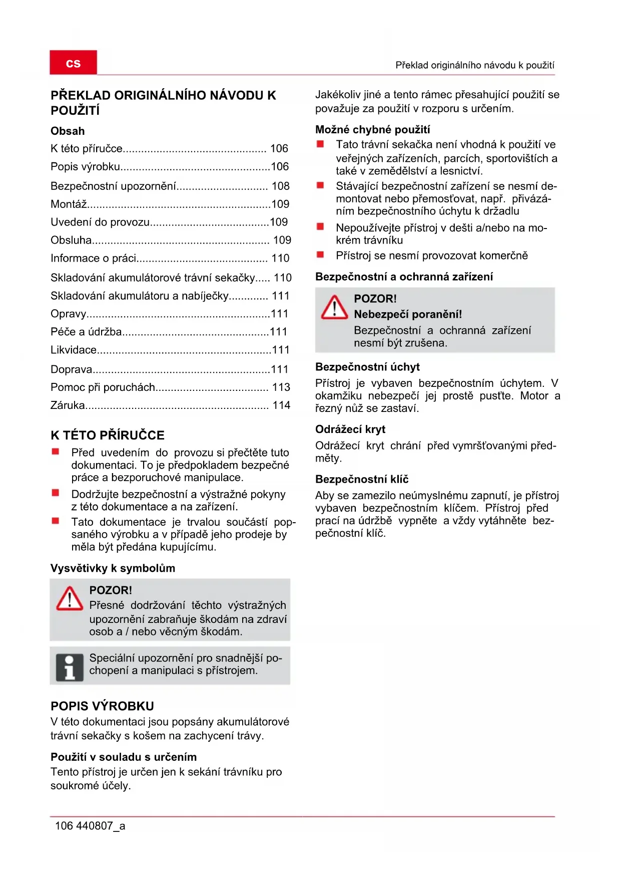 CS Překlad originálního návodu k použití106