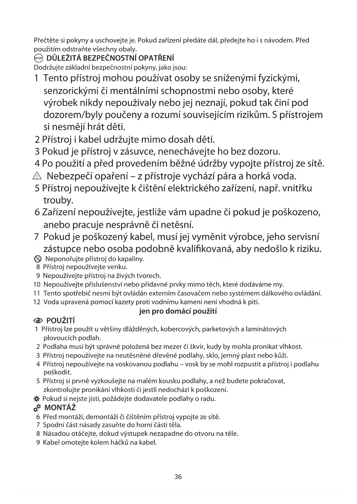 4 Přístroj nepoužívejte na voskovanou podlahu – vosk by se mohl rozpustit a přístroj i podlahu