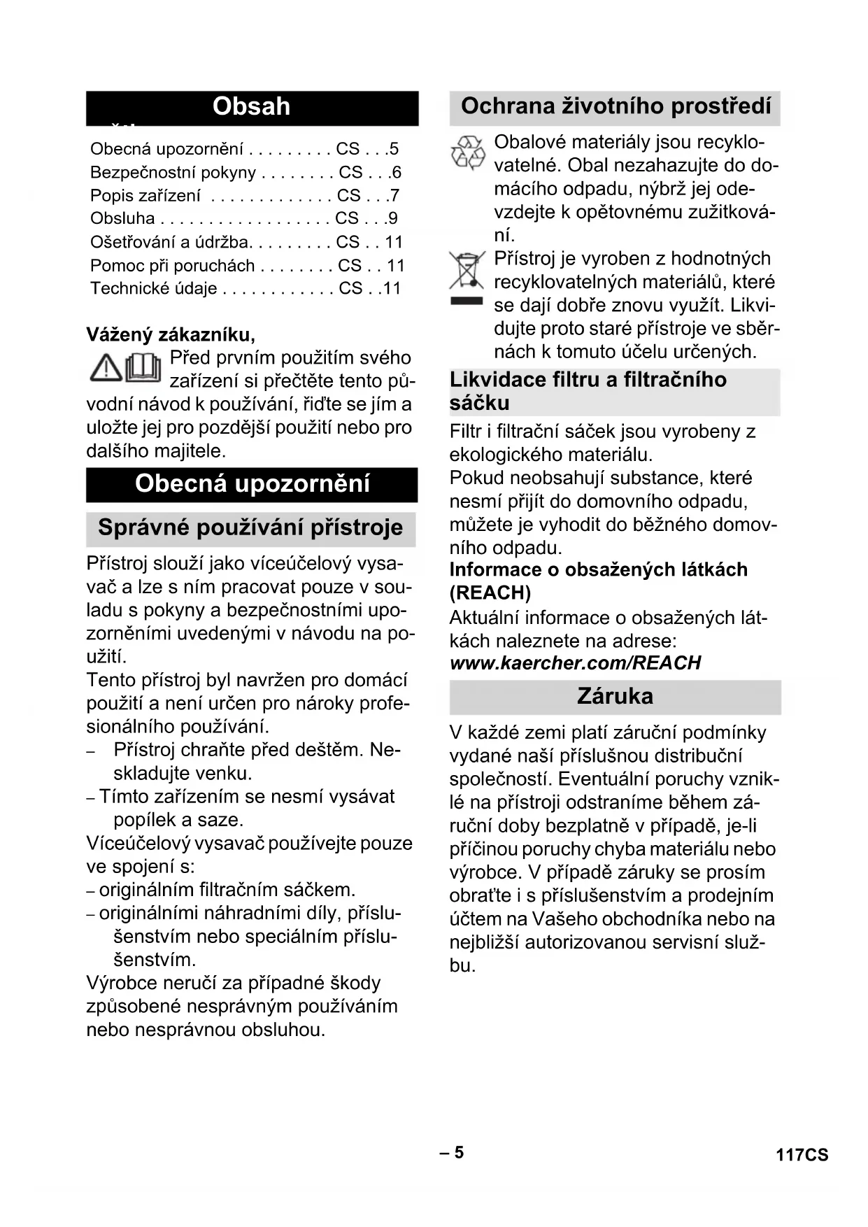 www.kaercher.com/REACH V každé zemi platí záruční podmínky