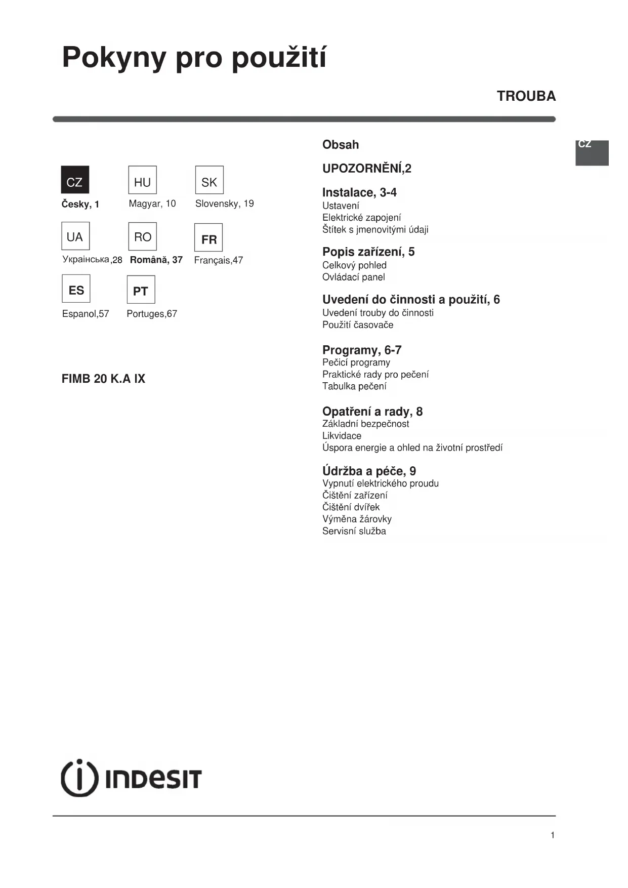 NÁVOD K OBSLUZE FIMB 20 K.A IX (EE) INDESIT