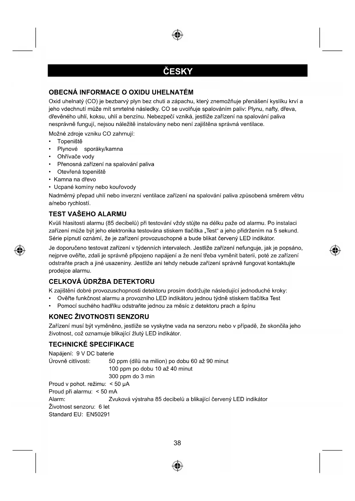 Tento alarm není náhražkou za hlásiče kouře nebo zvýšené teploty a také nenahrazuje pravidelný
