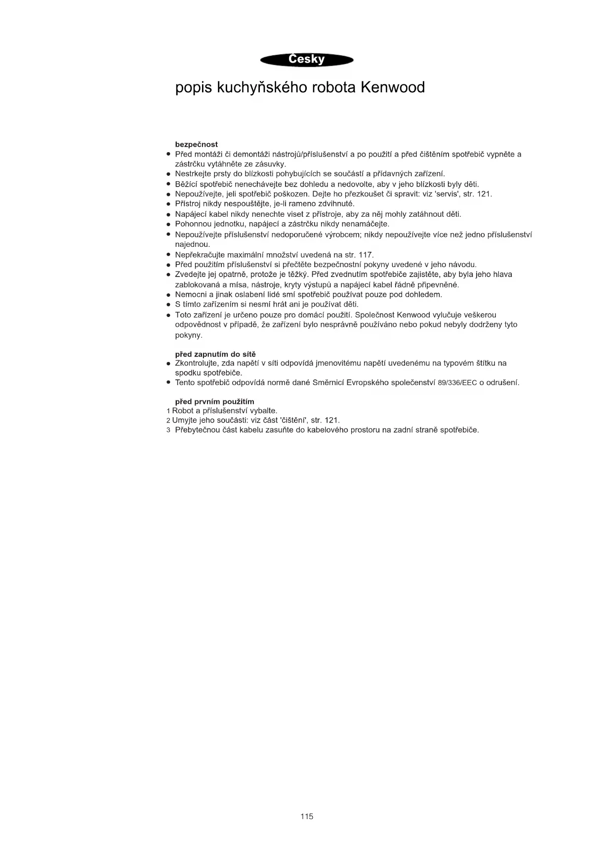 str. 115 návod k pou¥ití Blahop¡ejeme Vám ke koupi spot¡ebiïe znaïky Kenwood. Díky •irokému sortimentu