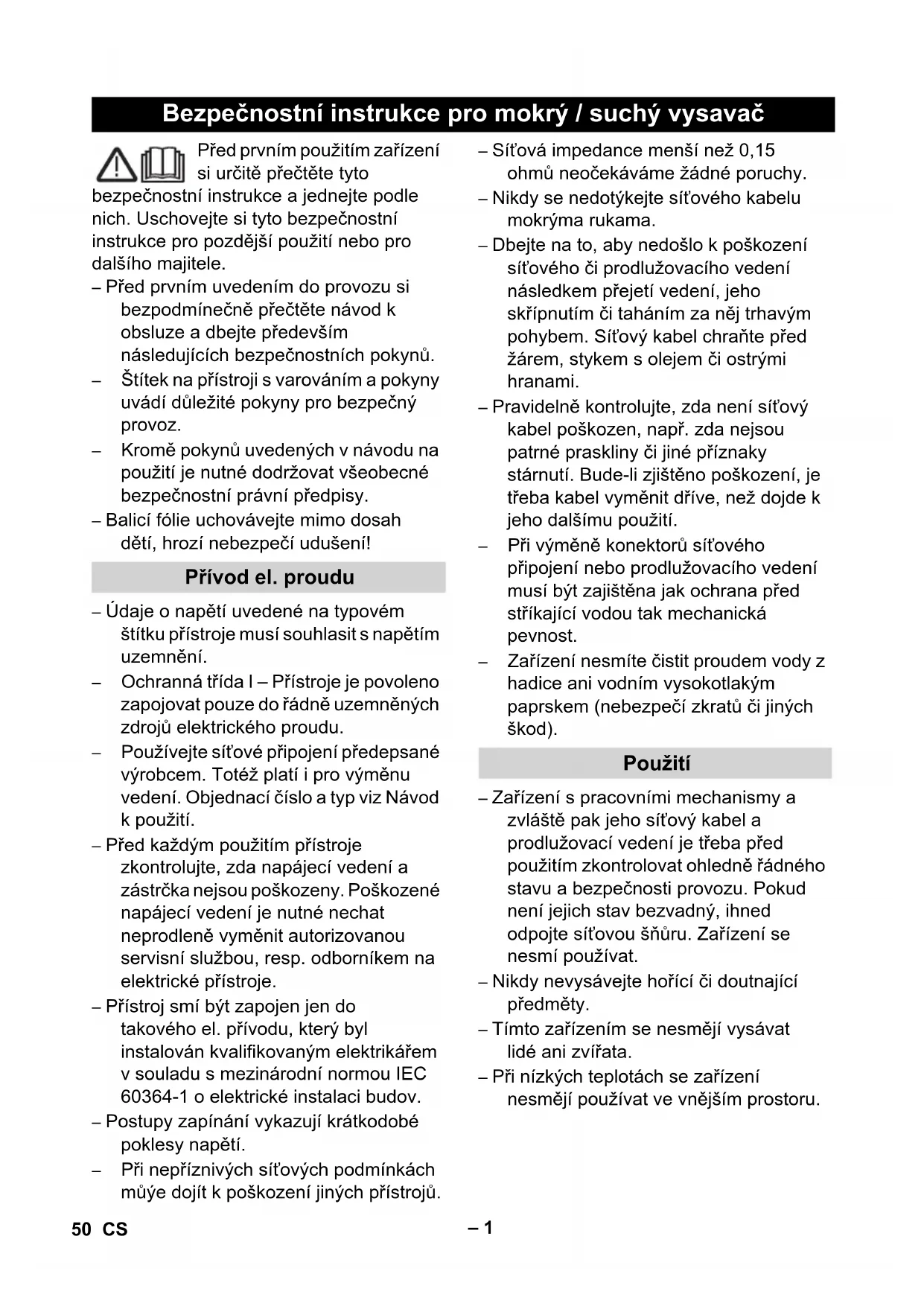 Bezpečnostní instrukce pro mokrý / suchý vysavač