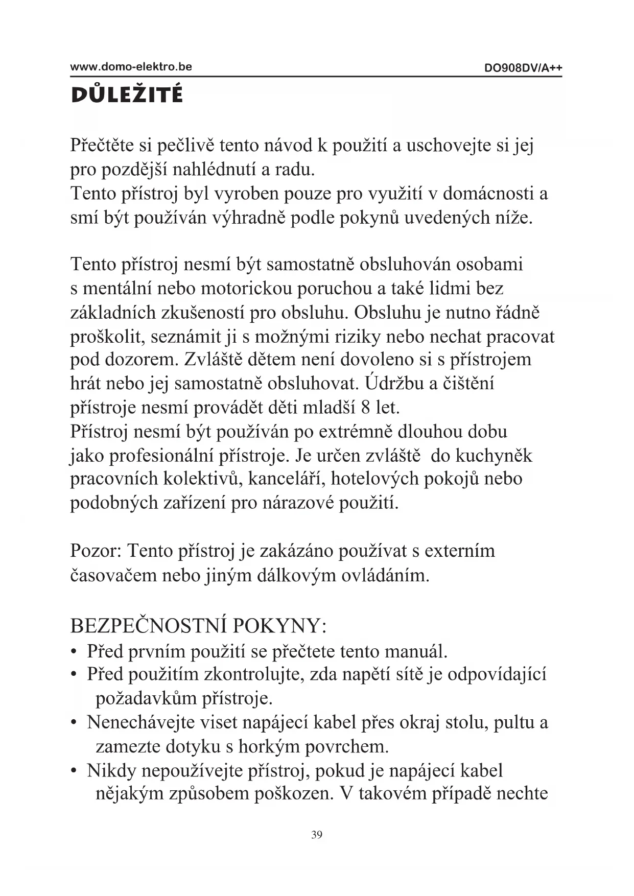 NÁVOD K OBSLUZE DO908DV DOMO