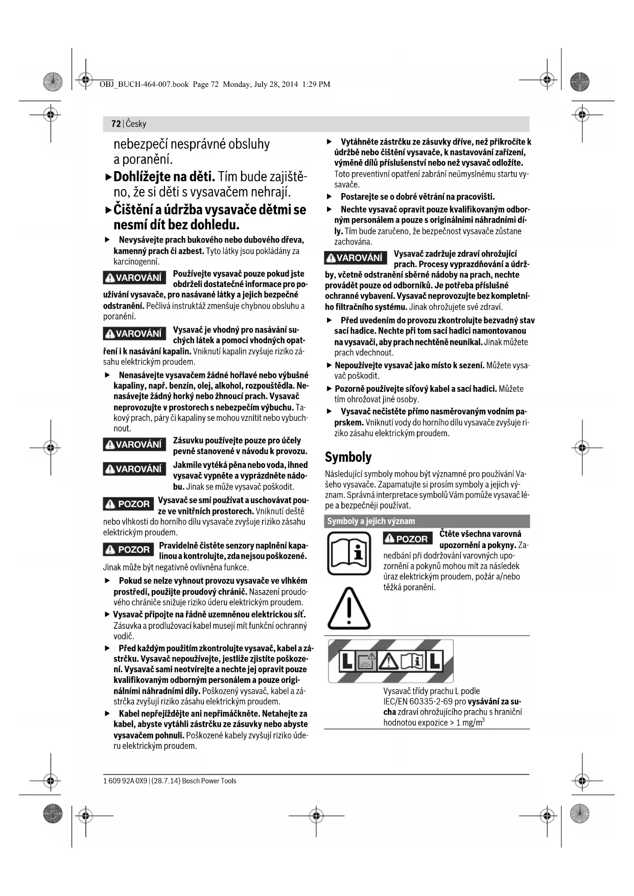 ná rizika. V opačném případě hrozí OBJ_BUCH-464-007.book Page 71 Monday, July 28, 2014 1:29 PM72 | Česky 1 609 92A 0X9 | (28.7.14) Bosch Power Tools nebezpečí nesprávné obsluhy
