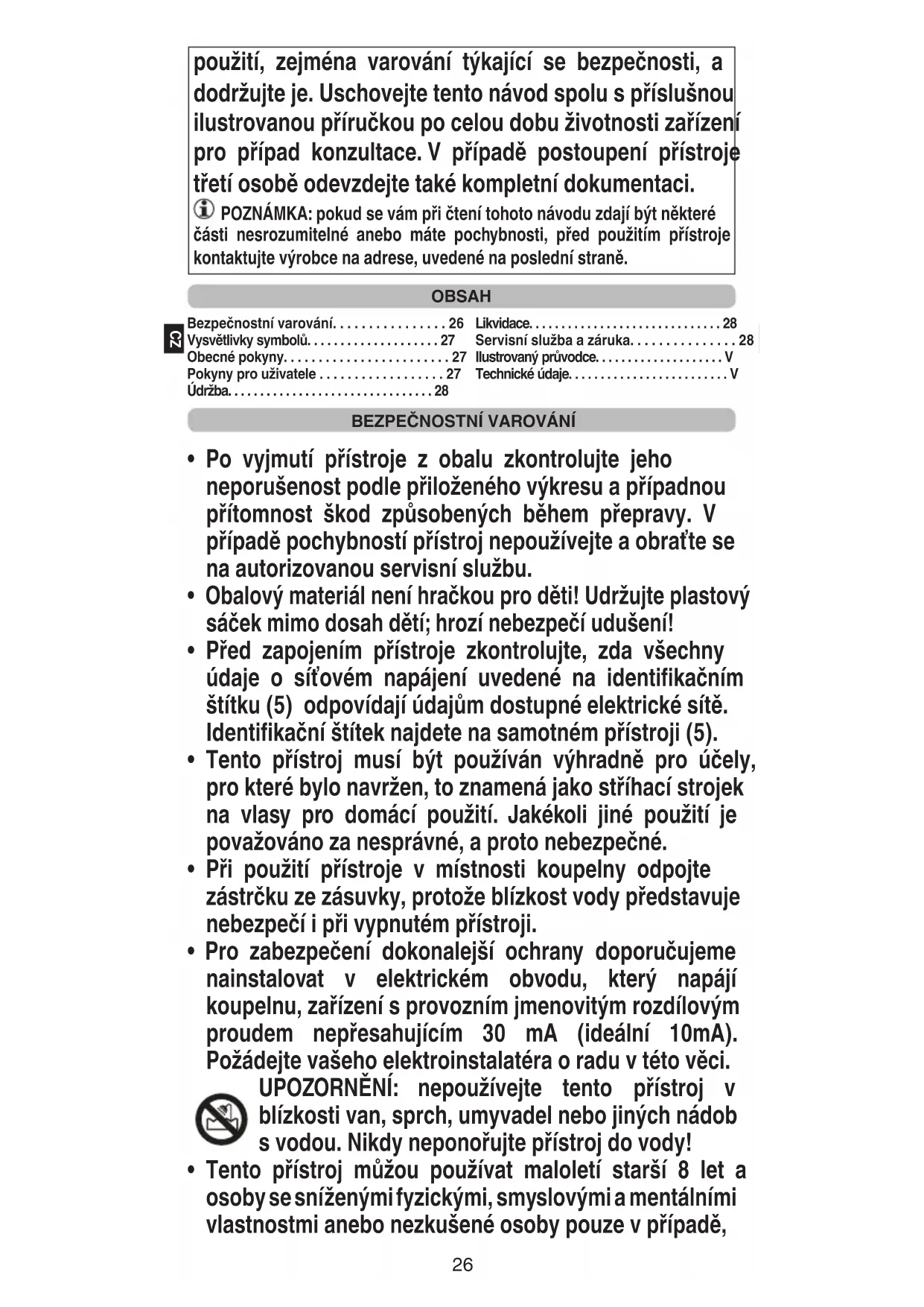 OBSAH Bezpečnostní varování. . . . . . . . . . . . . . . . 26