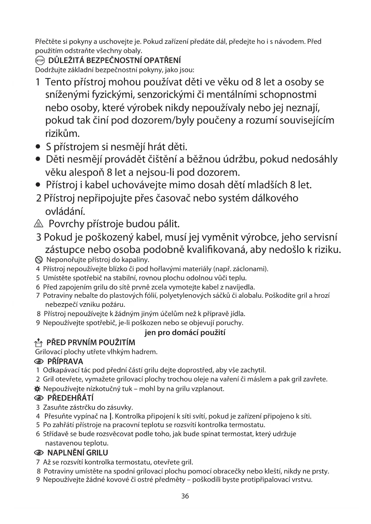 U PŘED PRVNÍM POUŽITÍM Grilovací plochy utřete vlhkým hadrem.