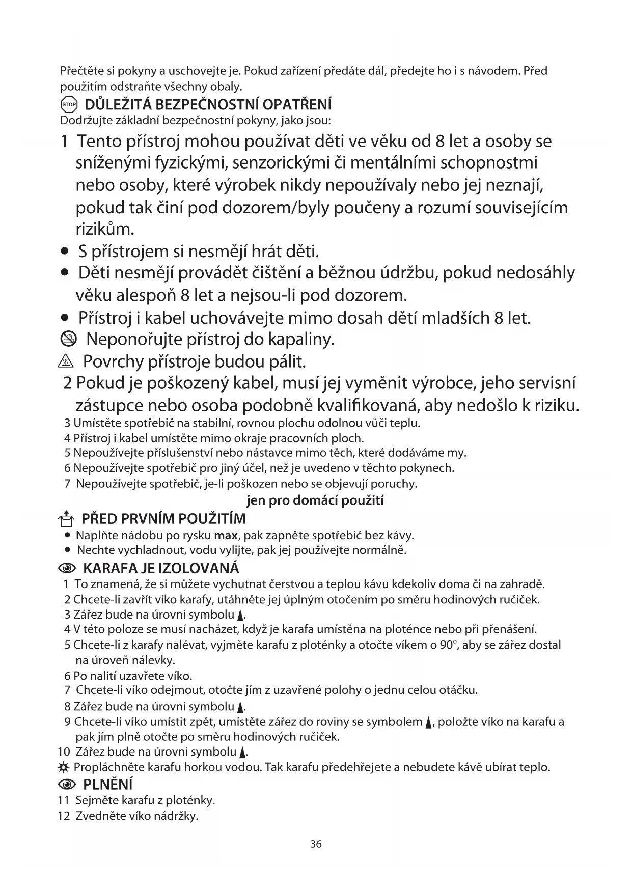 36 Karafu a držák filtru umyjte ručně.