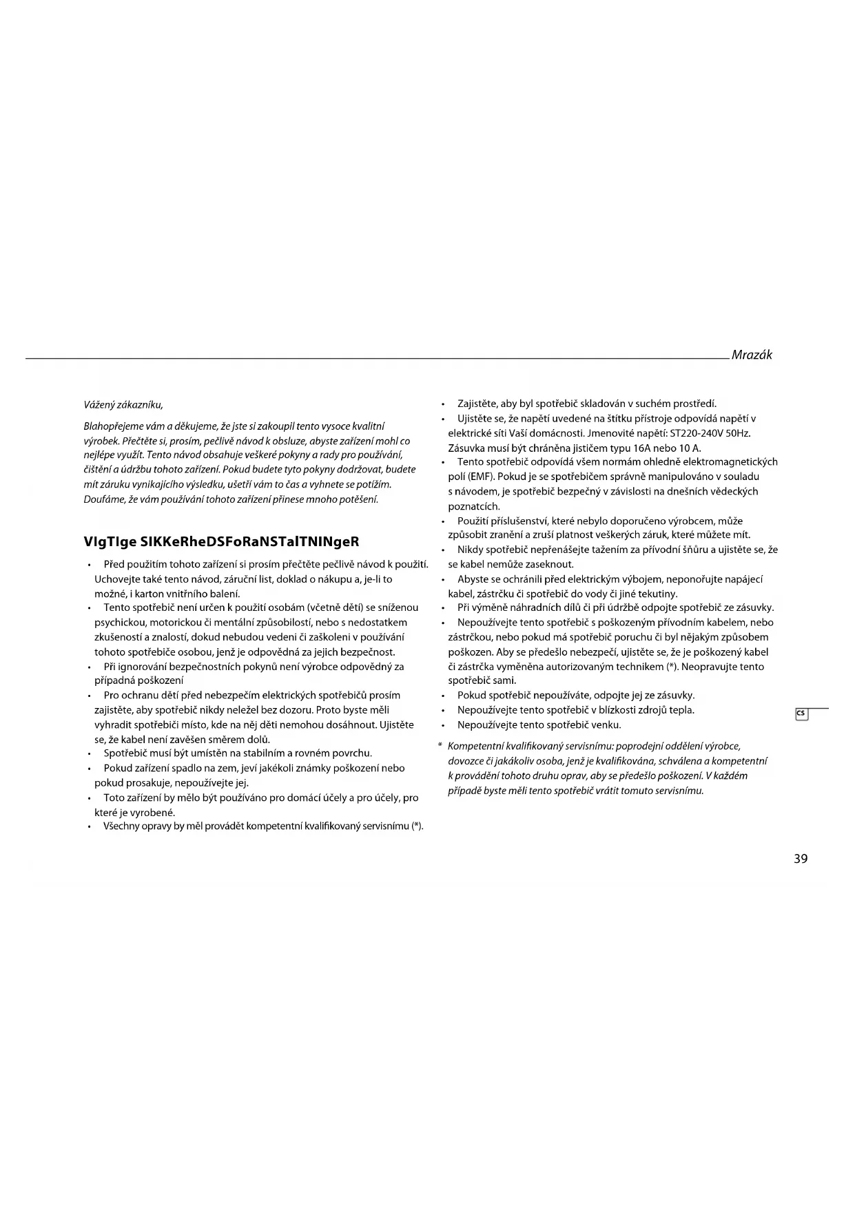 • Všechnyopravybymělprovádětkompetentníkvalikovanýservisnímu(*).