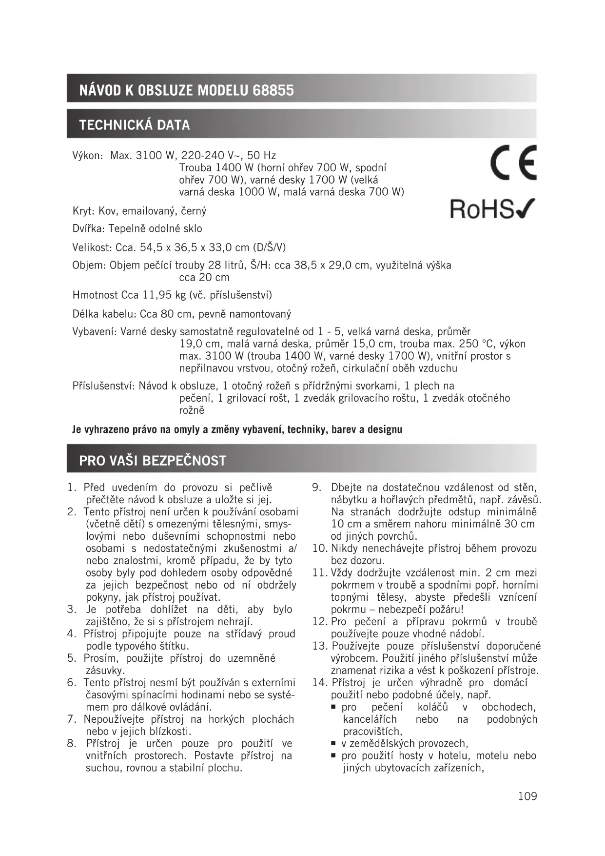 pečení, grilovací rožeň, mřížový rošt atd. můžete omýt teplou vodou s jemným sapo- nátem. Potom opláchněte části čistou vodou a dobře je osušte. Také můžete části čistit v myčce.
