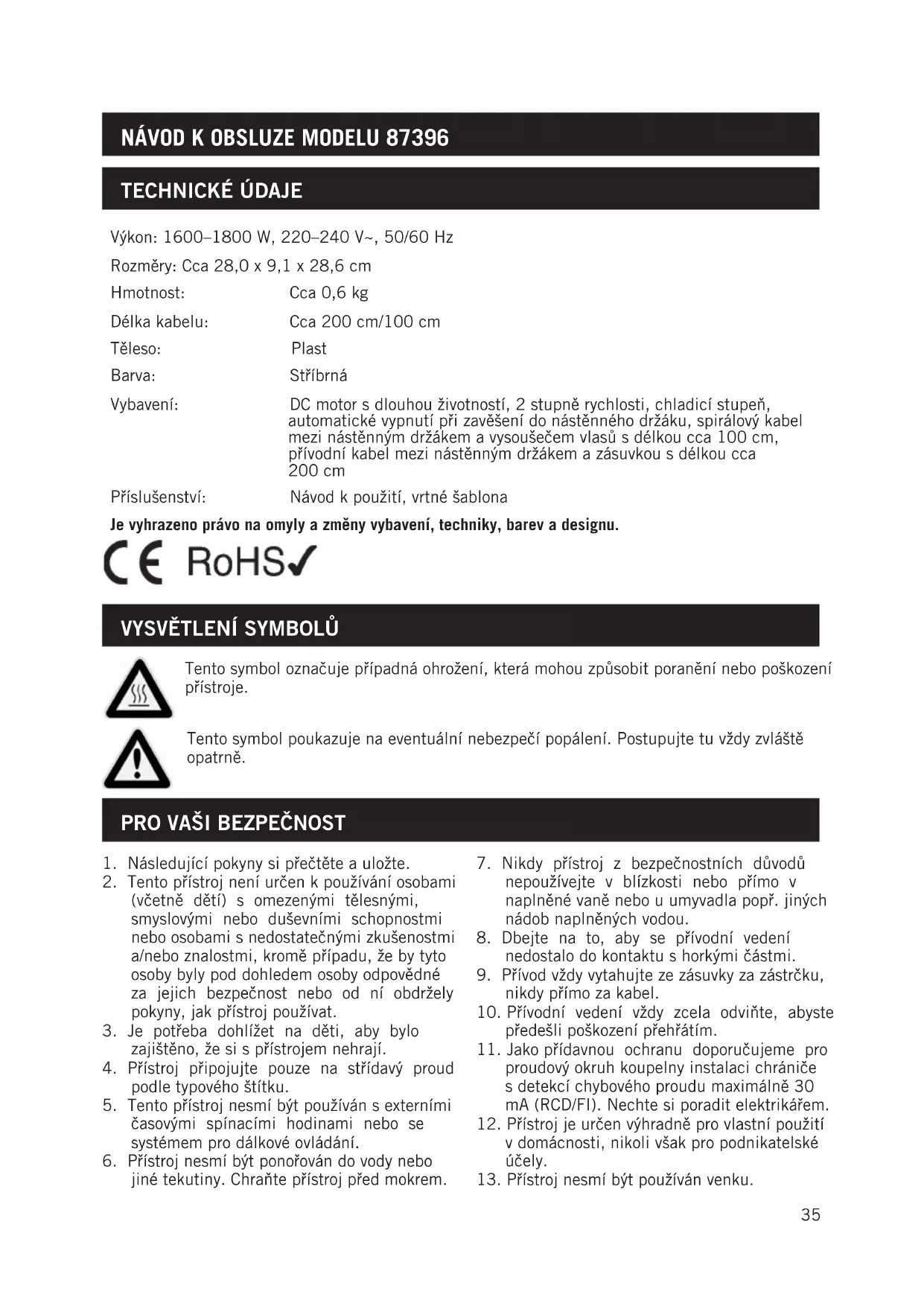 návoD k oBsluze MoDelu 87396