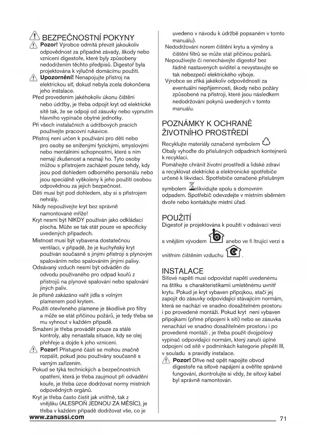 Téléchargez la notice de votre Kuchyňská digestoř au format PDF gratuitement ! Retrouvez votre notice ZHC 7131 X - ZANUSSI et reprennez votre appareil électronique en main. Sur cette page sont publiés tous les documents nécessaires à l'utilisation de votre appareil ZHC 7131 X de la marque ZANUSSI.