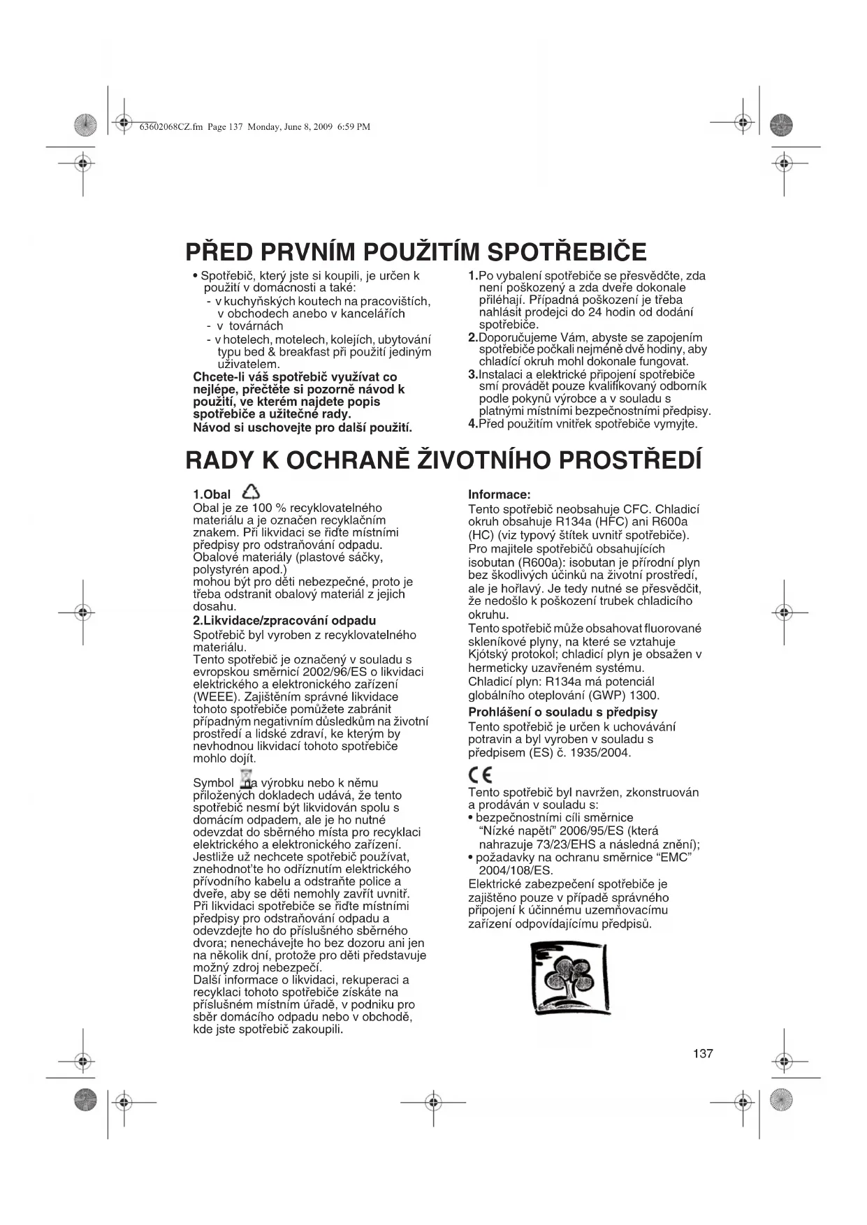 PŘED PRVNÍM POUŽITÍM SPOTŘEBIČE RADY K OCHRANĚ ŽIVOTNÍHO PROSTŘEDÍ