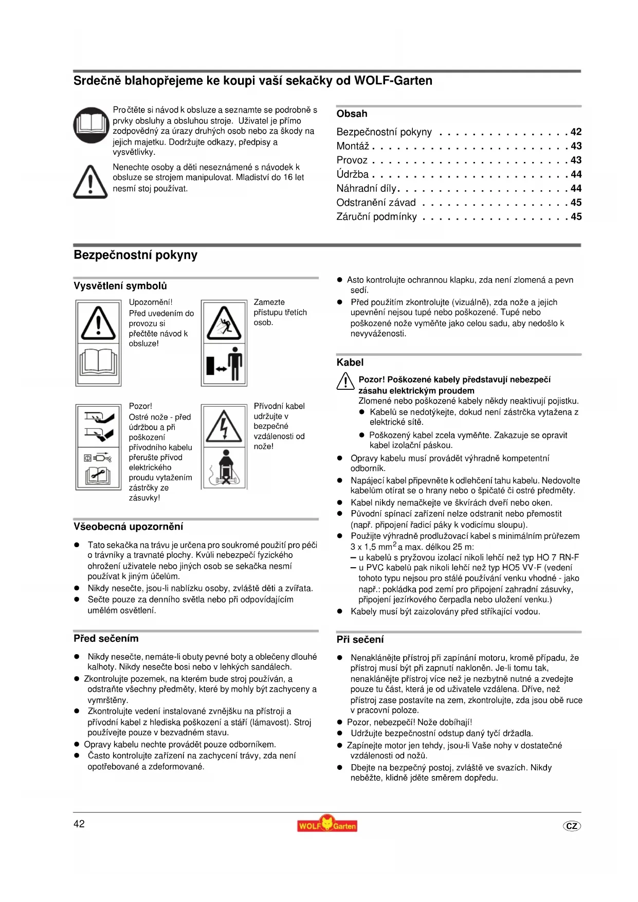 - Srdečně blahopřejeme ke koupi vaší sekačky od WOLF-Garten Obsah Bezpečnostní pokyny p. 42