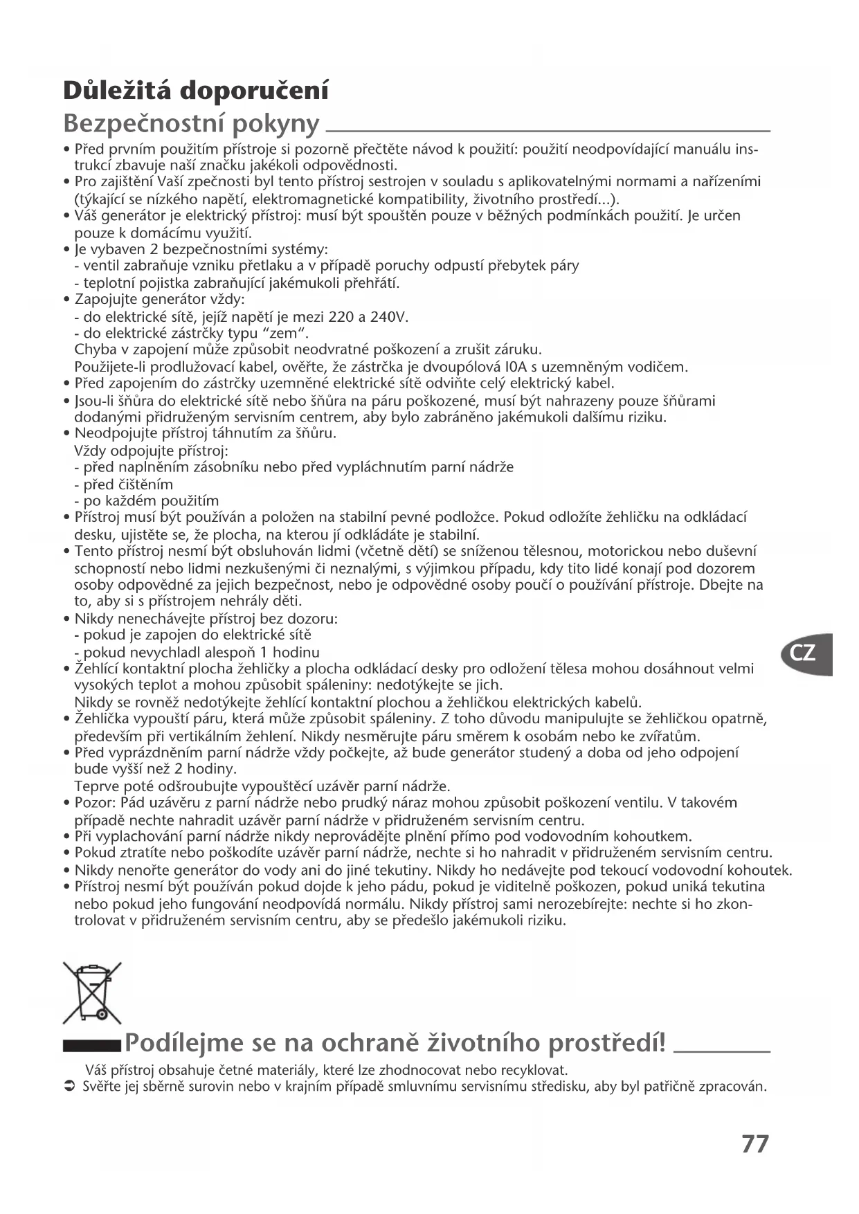 • Îehliãka vypou‰tí páru, která mÛÏe zpÛsobit spáleniny. Z toho dÛvodu manipulujte se Ïehliãkou opatrnû,