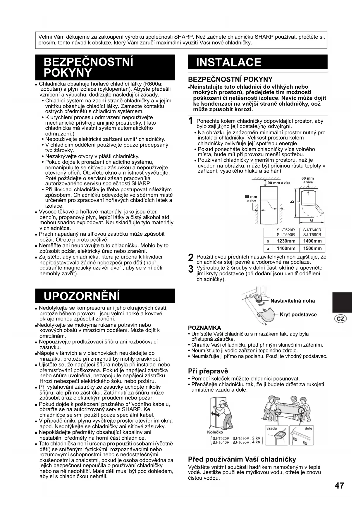 Velmi Vám děkujeme za zakoupení výrobku společnosti SHARP. Než začnete chladničku SHARP používat, přečtěte si,