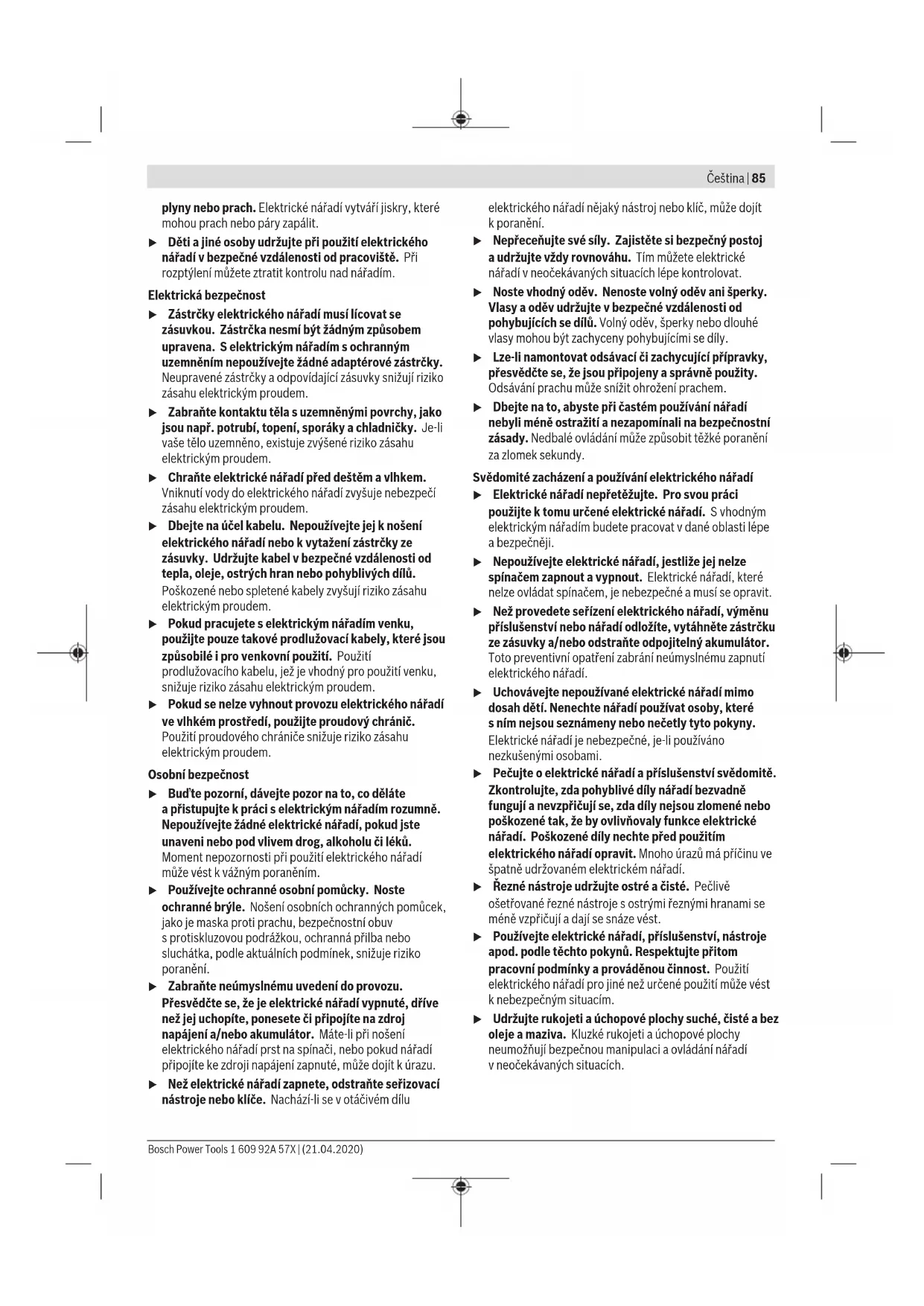 kúrazům. u Selektrickým nářadím nepracujte vprostředí ohroženém explozí, kde se nacházejí hořlavé kapaliny, 1 609 92A 57X | (21.04.2020) Bosch Power ToolsČeština | 85