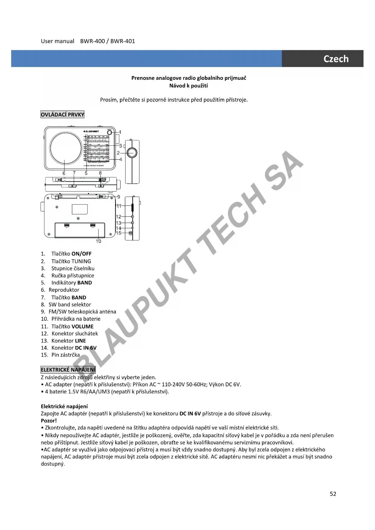 NÁVOD K OBSLUZE BWR400 BLAUPUNKT
