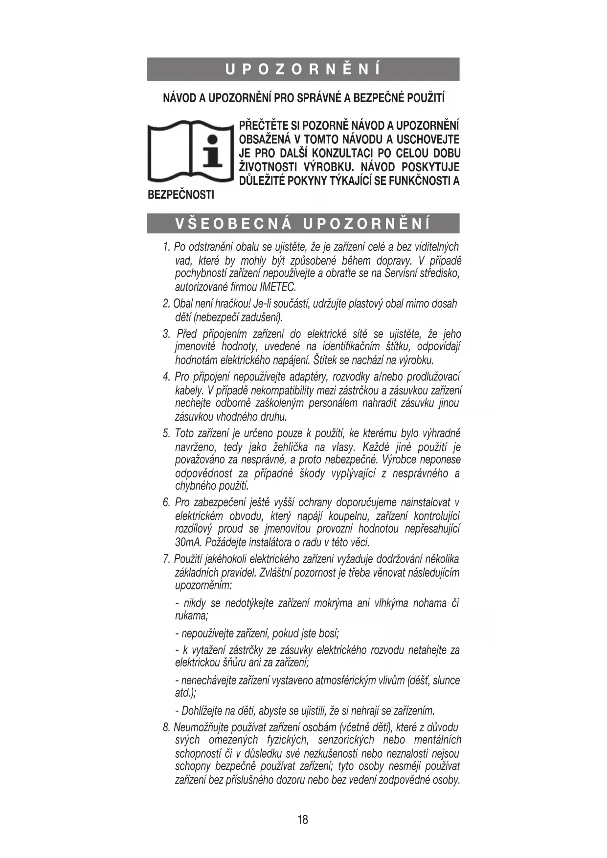 IMETEC vám děkuje, že jste si zvolili tento výrobek. Jsme si jisti, že oceníte