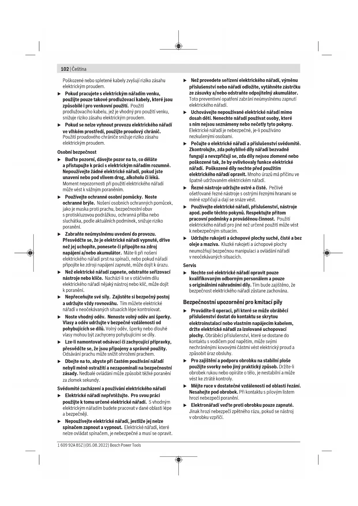 tepla, oleje, ostrých hran nebo pohyblivých dílů. Bosch Power Tools 1 609 92A 85Z | (05.08.2022)102 | Čeština