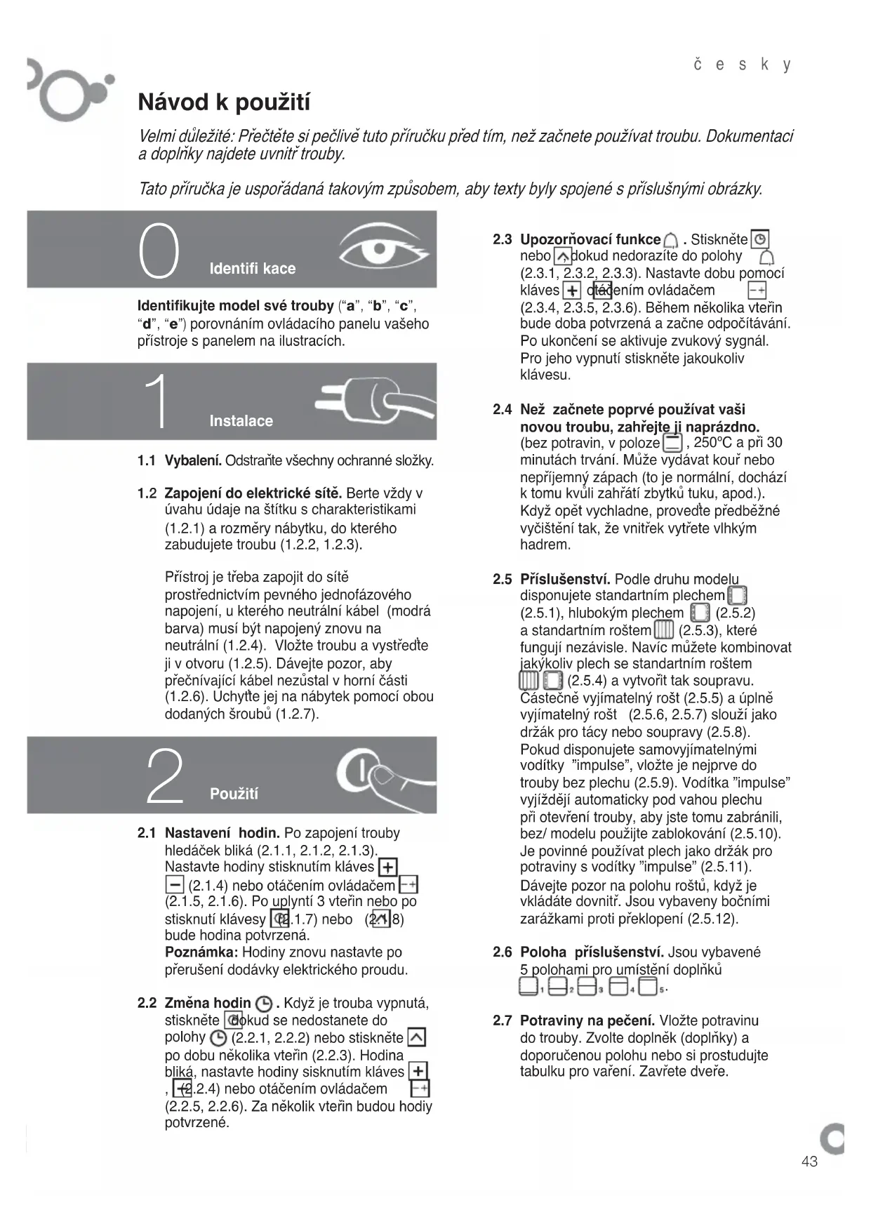 Velmi důležité: Přečtěte si pečlivě tuto příručku před tím, než začnete používat troubu. Dokumentaci