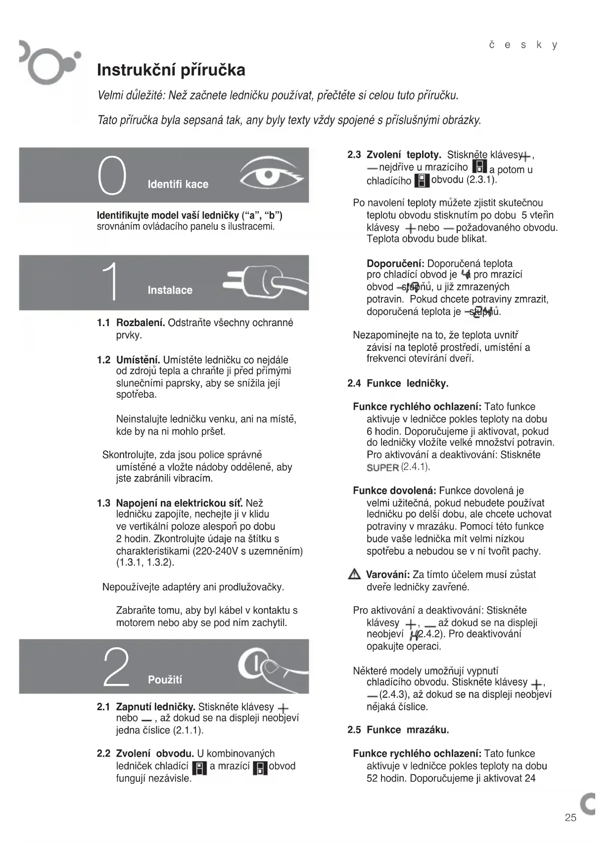 Velmi důležité: Než začnete ledničku používat, přečtěte si celou tuto příručku.