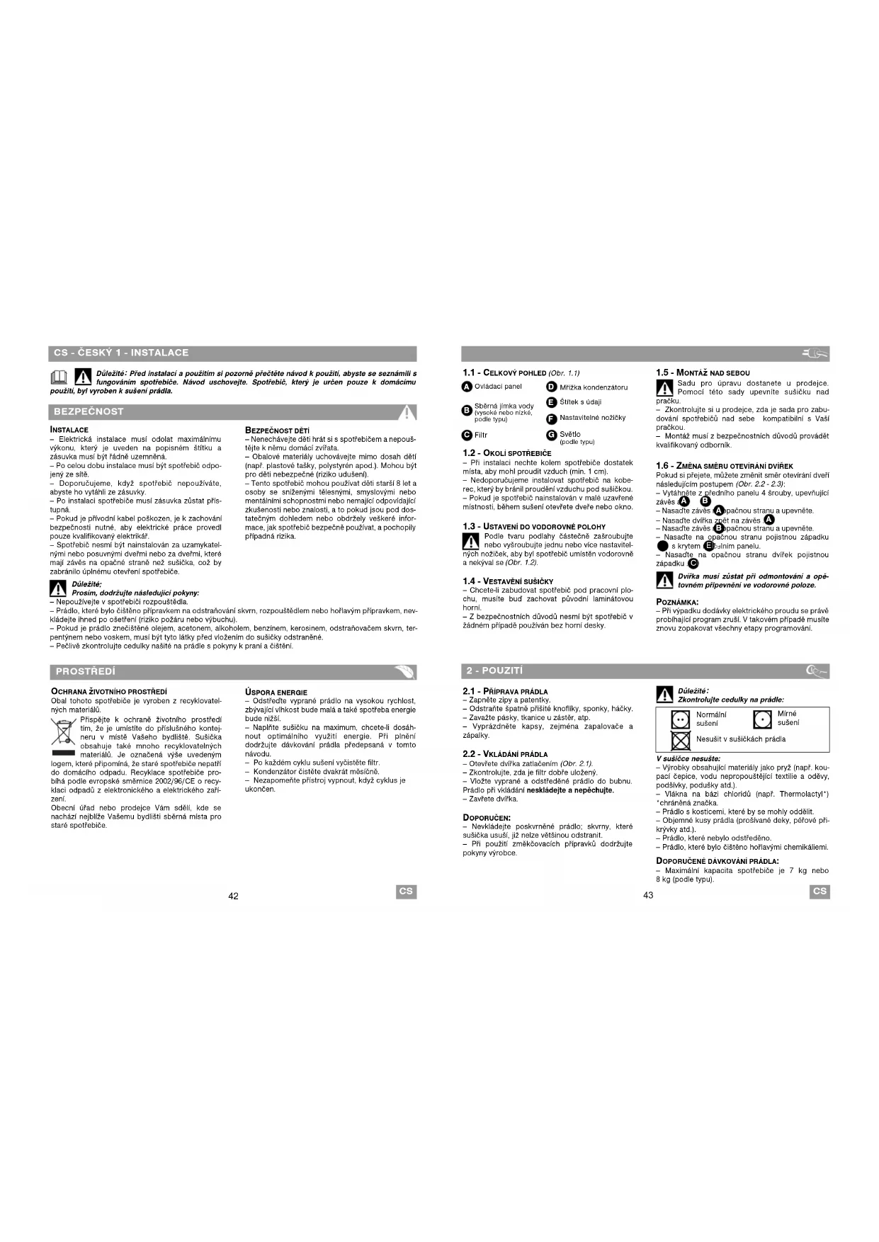 1 -6 - ANOMÁLIE Při používání sušičky se mohou objevit některé závady. V následující tabulce uvádíme body, které je v takovýchpřípadech třeba zkontrolovat: Závady: Zkontrolujte, zda: