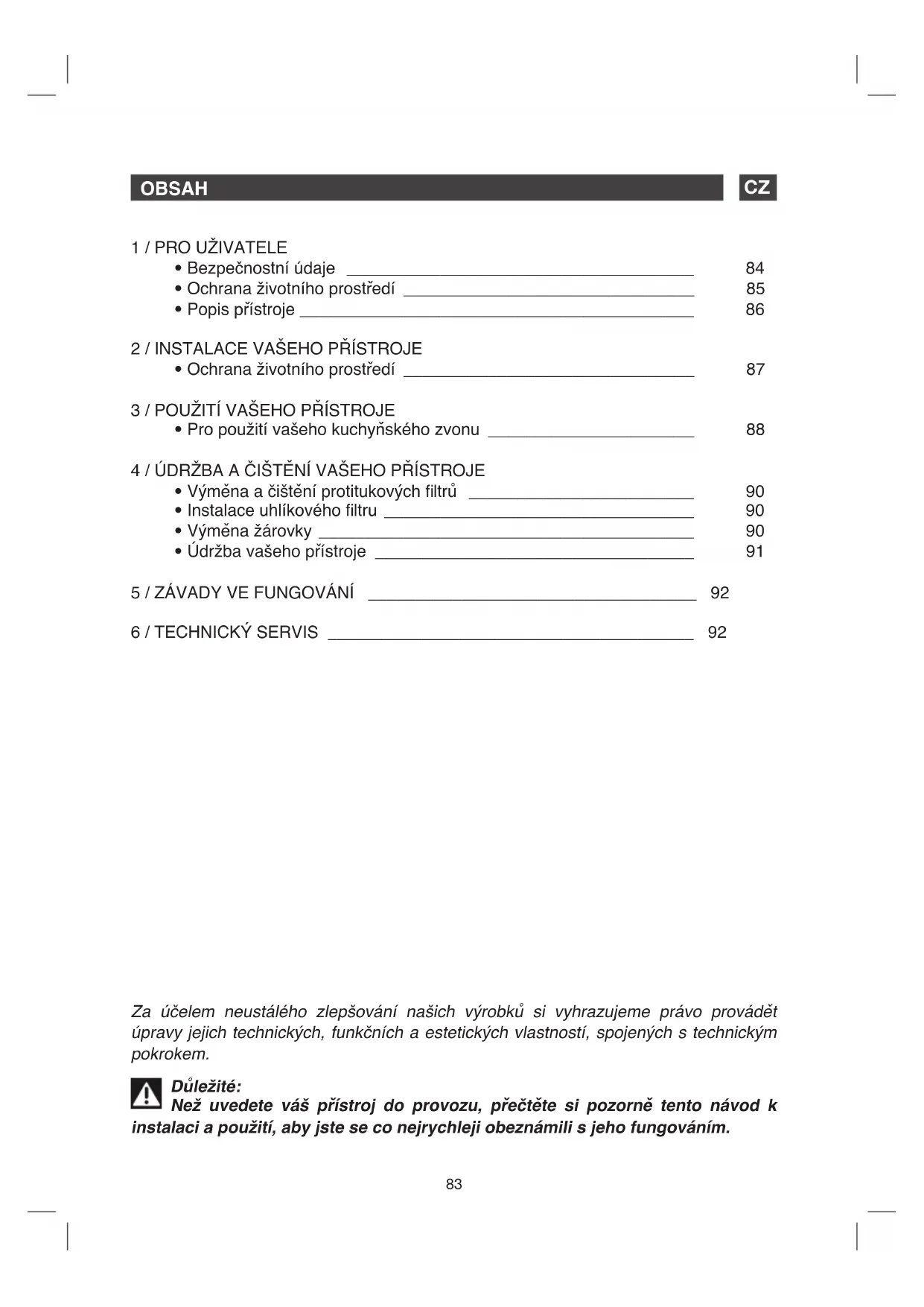 • Výměna a čištění protitukových fi ltrů ________________________ 90