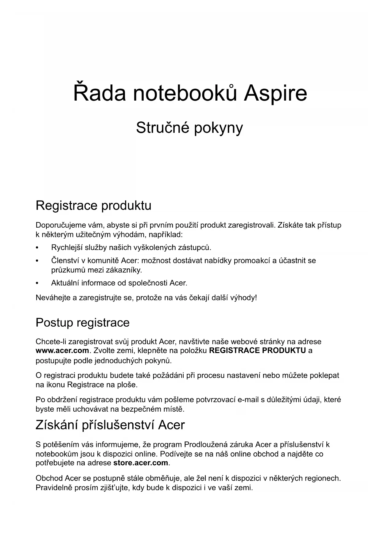 www.acer.com. Zvolte zemi, klepněte na položku REGISTRACE PRODUKTU a