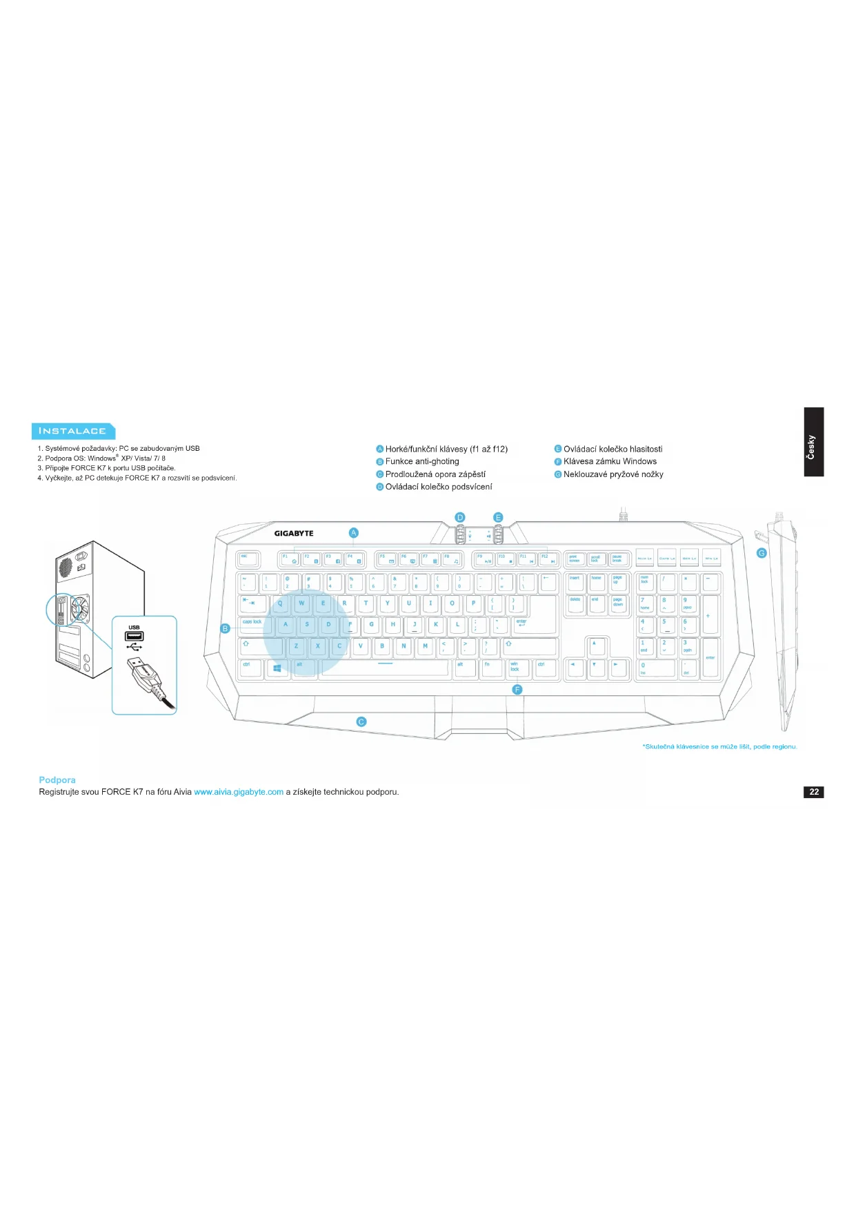 Registrujte svou FORCE K7 na fóru Aivia www.aivia.gigabyte.com a získejte technickou podporu.