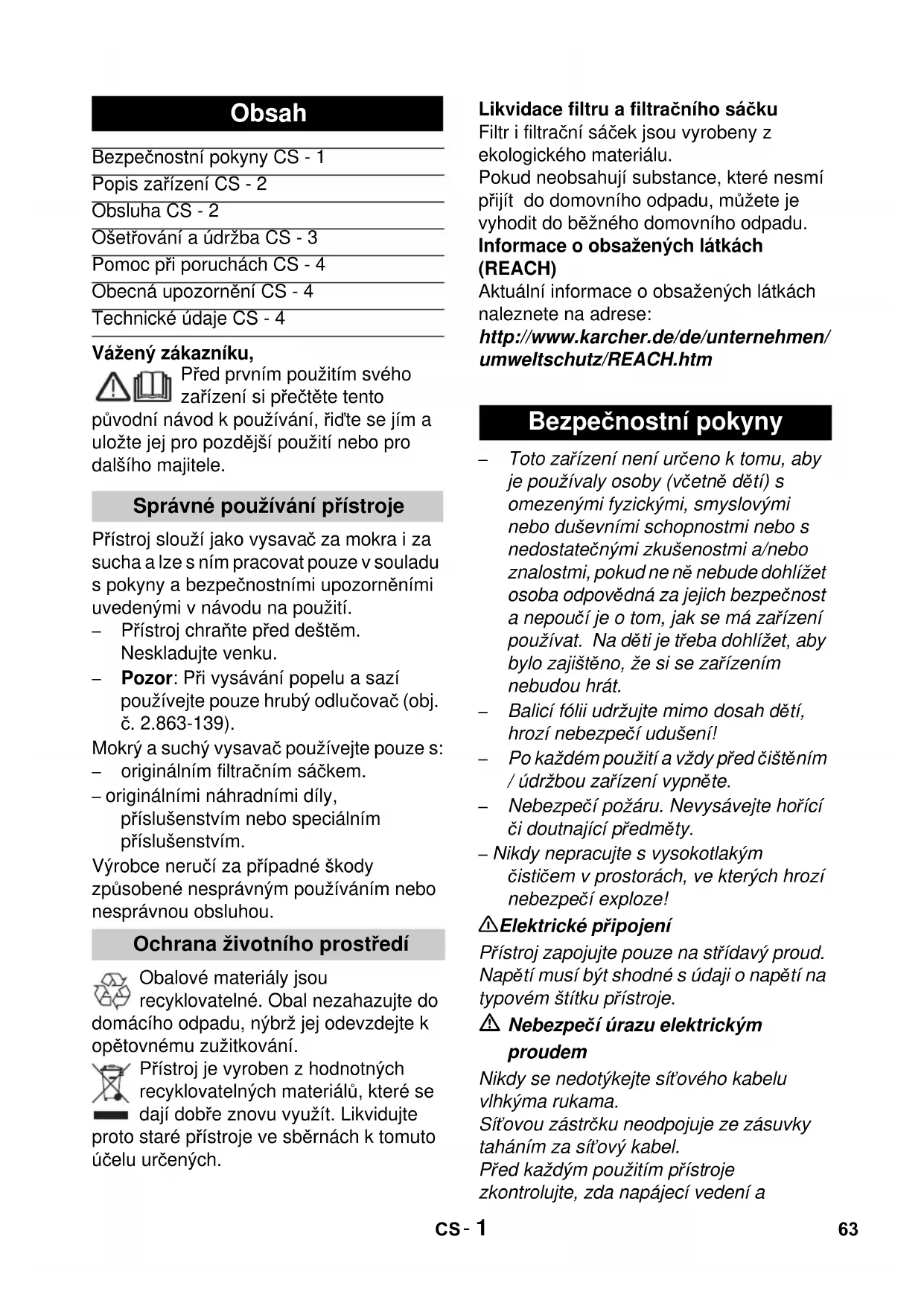 A 2500 - Vysavač Kärcher - Bezplatný návod k obsluze