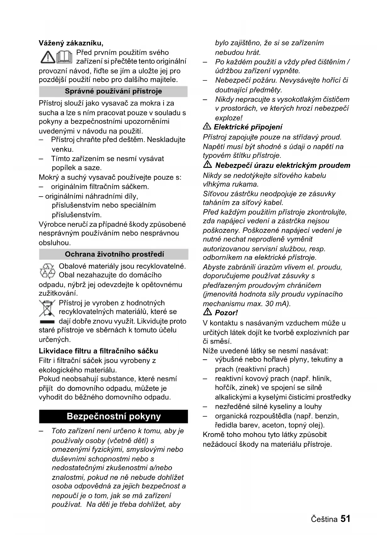 A 2254 ME - Vysavač Kärcher - Bezplatný návod k obsluze