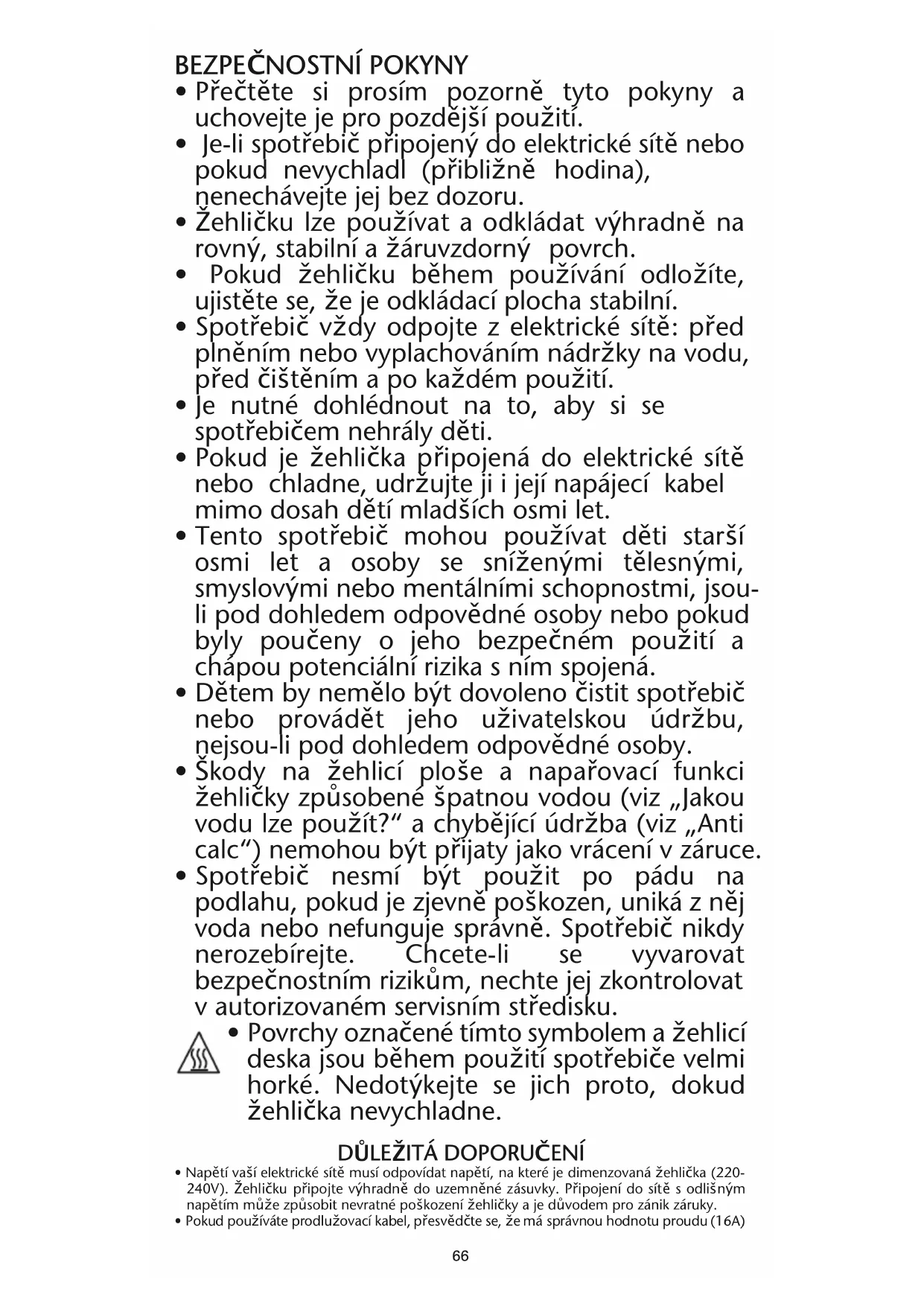 • V zájmu vaší bezpečnosti vyhovuje tento spotřebič všem souvisejícím normám a