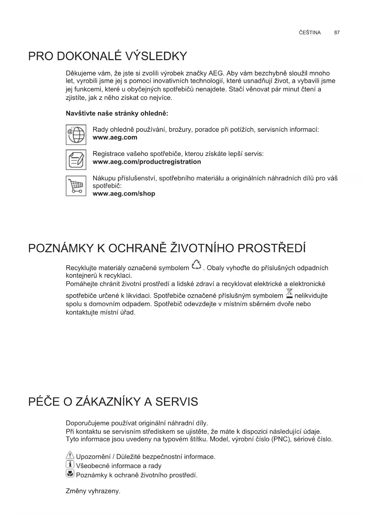 ČEŠTINA Děkujeme vám, že jste si zvolili výrobek značky AEG. Aby vám bezchybně sloužil mnoho