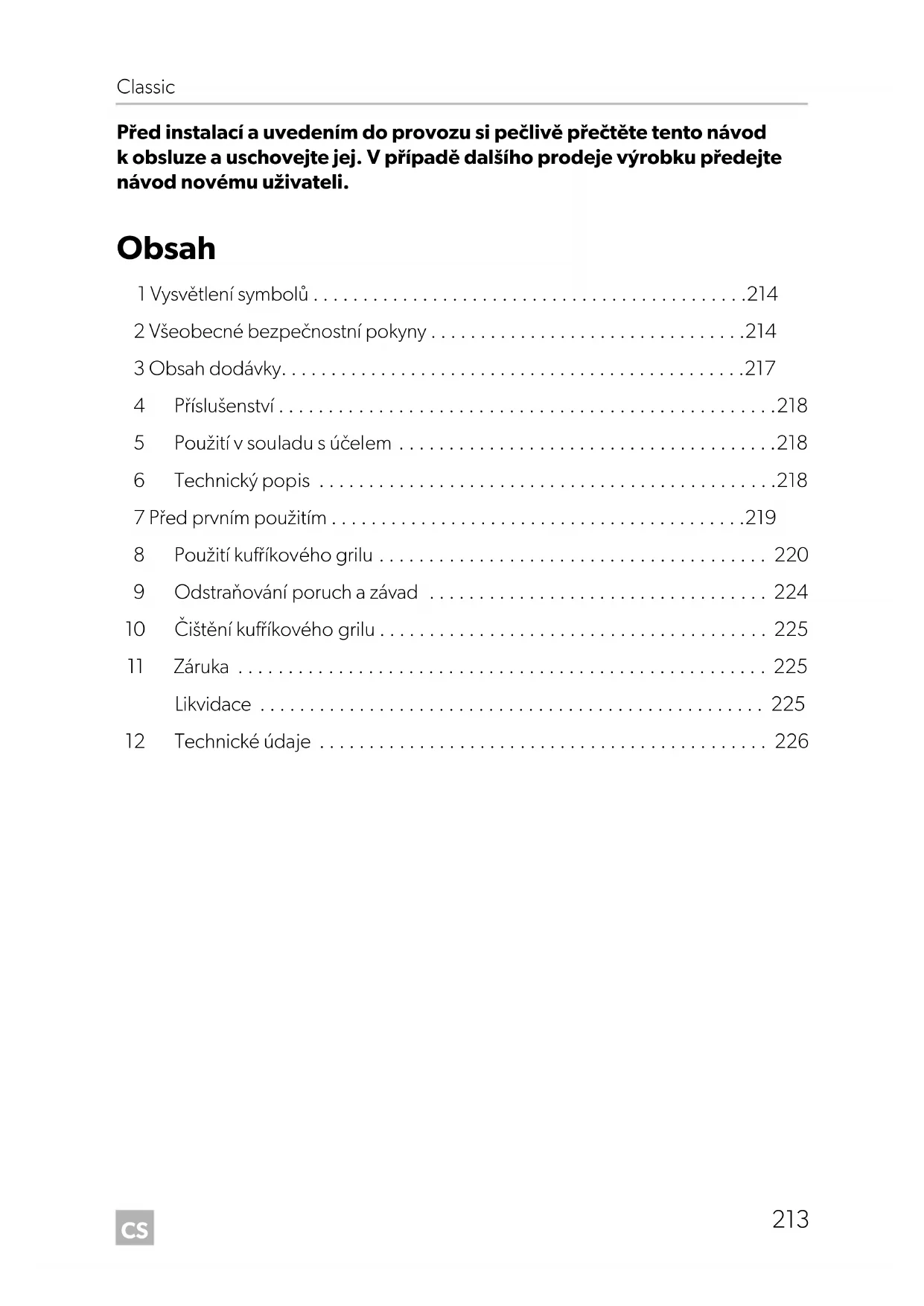 10 Čištění kufříkového grilu . . . . . . . . . . . . . . . . . . . . . . . . . . . . . . . . . . . . . . . 225