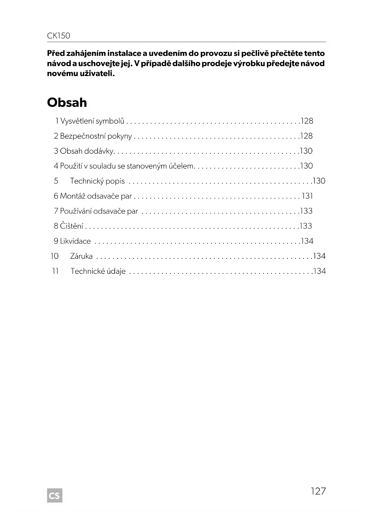 Návod k montáži a obsluze . . . . . . . . . . . 127