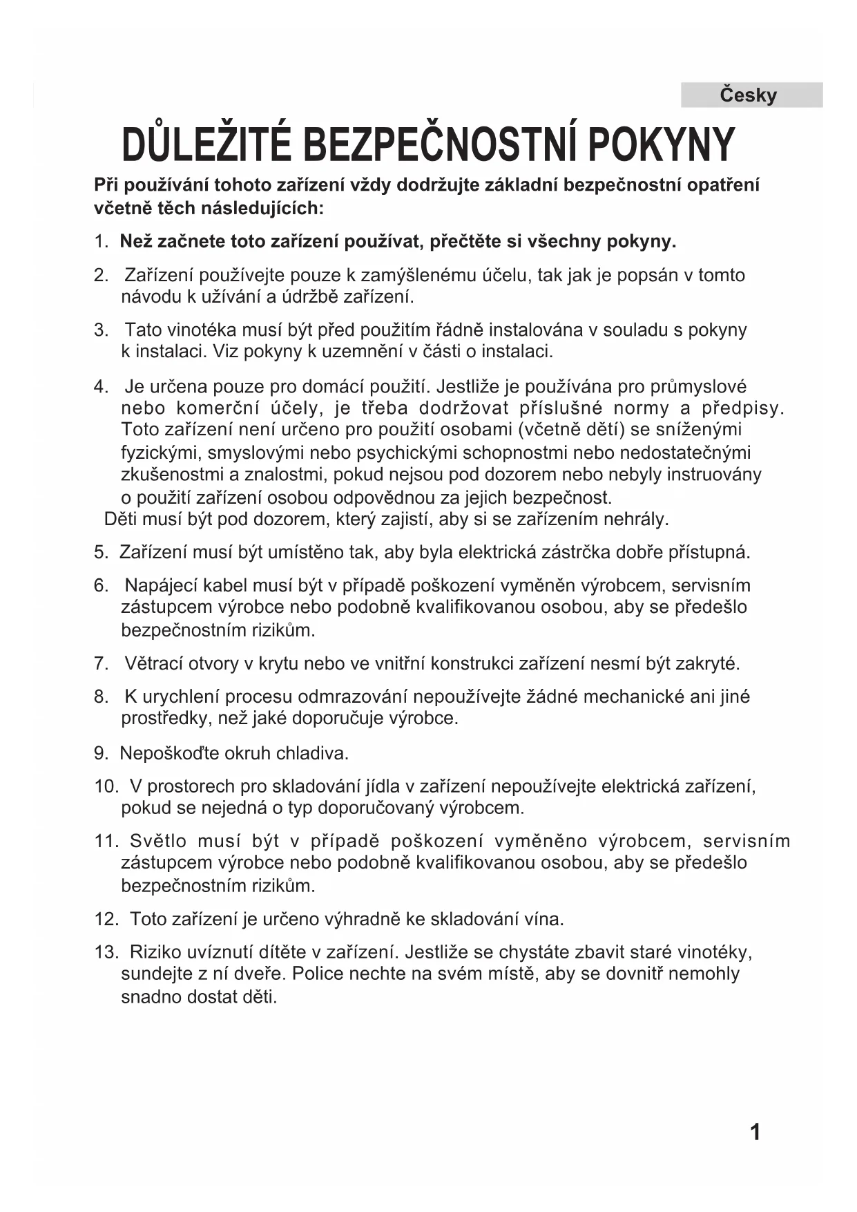 12. Toto zařízení je určeno výhradně ke skladování vína.