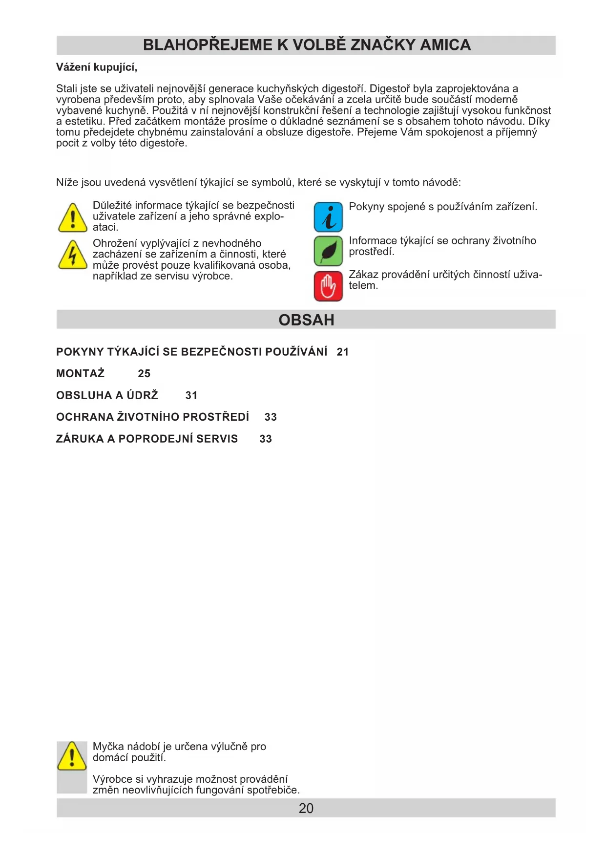 BLAHOPŘEJEME K VOLBĚ ZNAČKY AMICA POKYNY TÝKAJÍCÍ SE BEZPEČNOSTI POUŽÍVÁNÍ 21