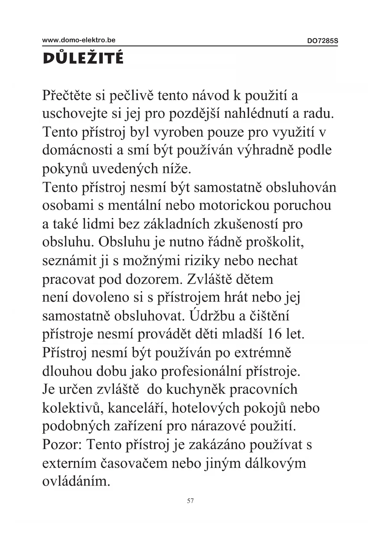 NÁVOD K OBSLUZE DO7285S DOMO