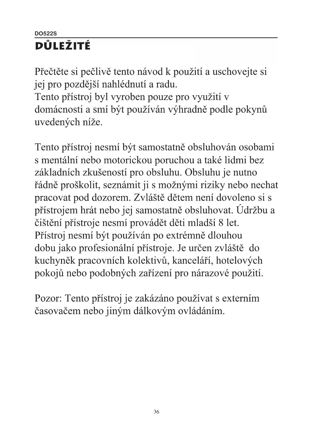 NÁVOD K OBSLUZE DO522S DOMO