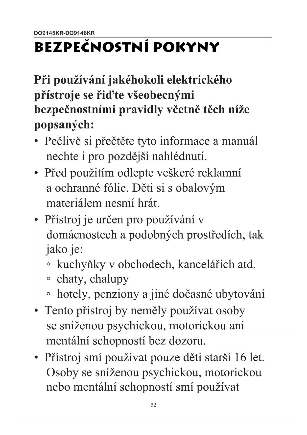 USCHOVEJTE SI TENTO MANUÁL I PRO POZDĚJŠÍ NAHLÉDNUTÍDO9145KR-DO9146KR