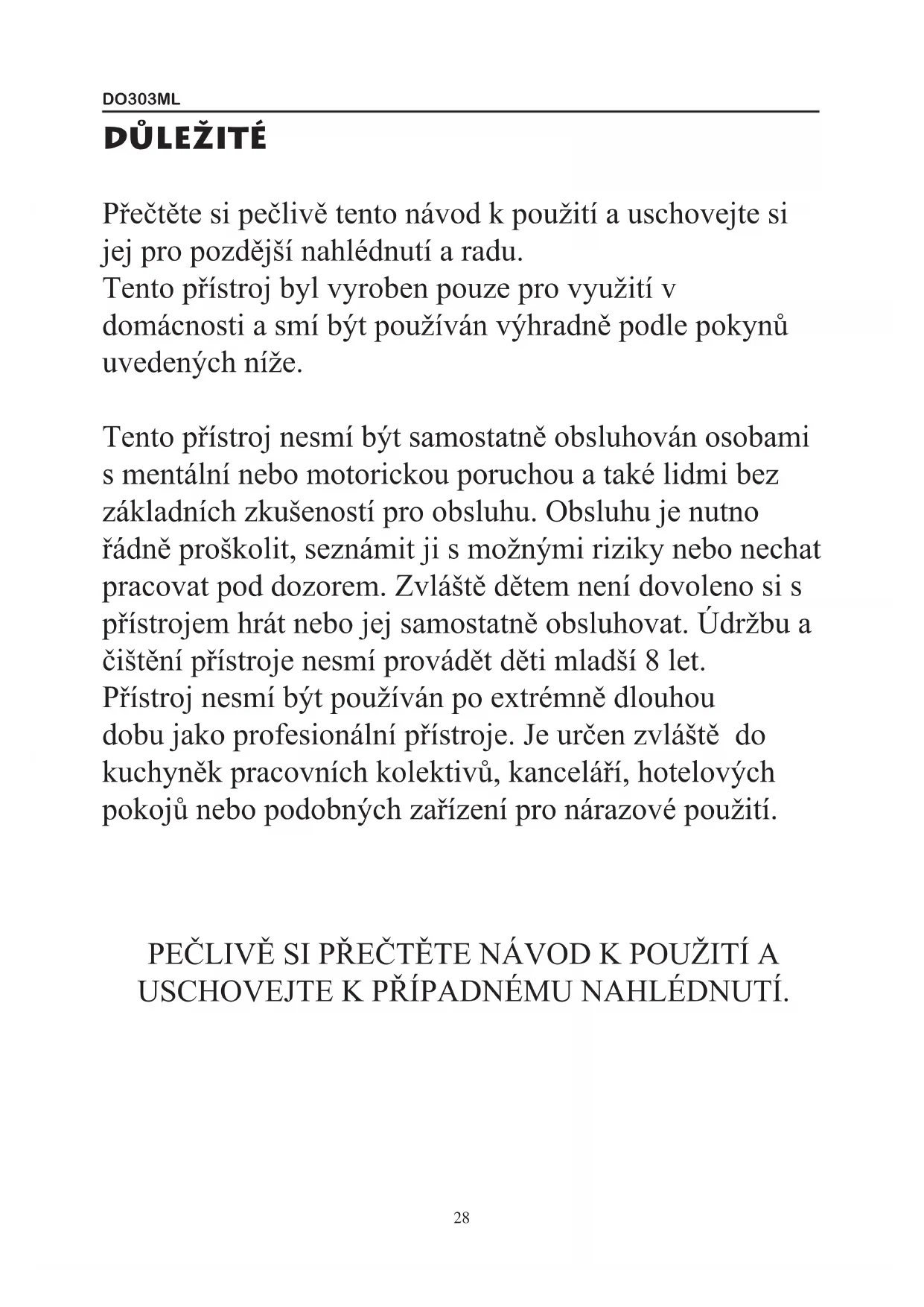 PEČLIVĚ SI PŘEČTĚTE NÁVOD K POUŽITÍ A USCHOVEJTE K PŘÍPADNÉMU NAHLÉDNUTÍ.DO303ML