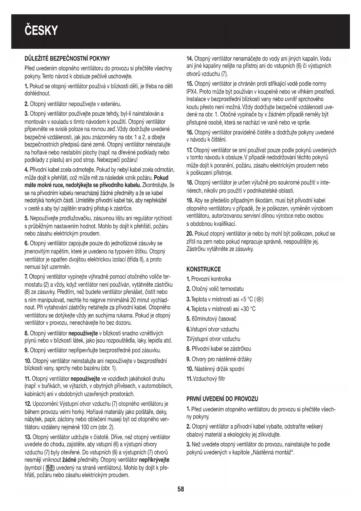 DŮLEŽITÉ BEZPEČNOSTNÍ POKYNY Před uvedením otopného ventilátoru do provozu si přečtěte všechny