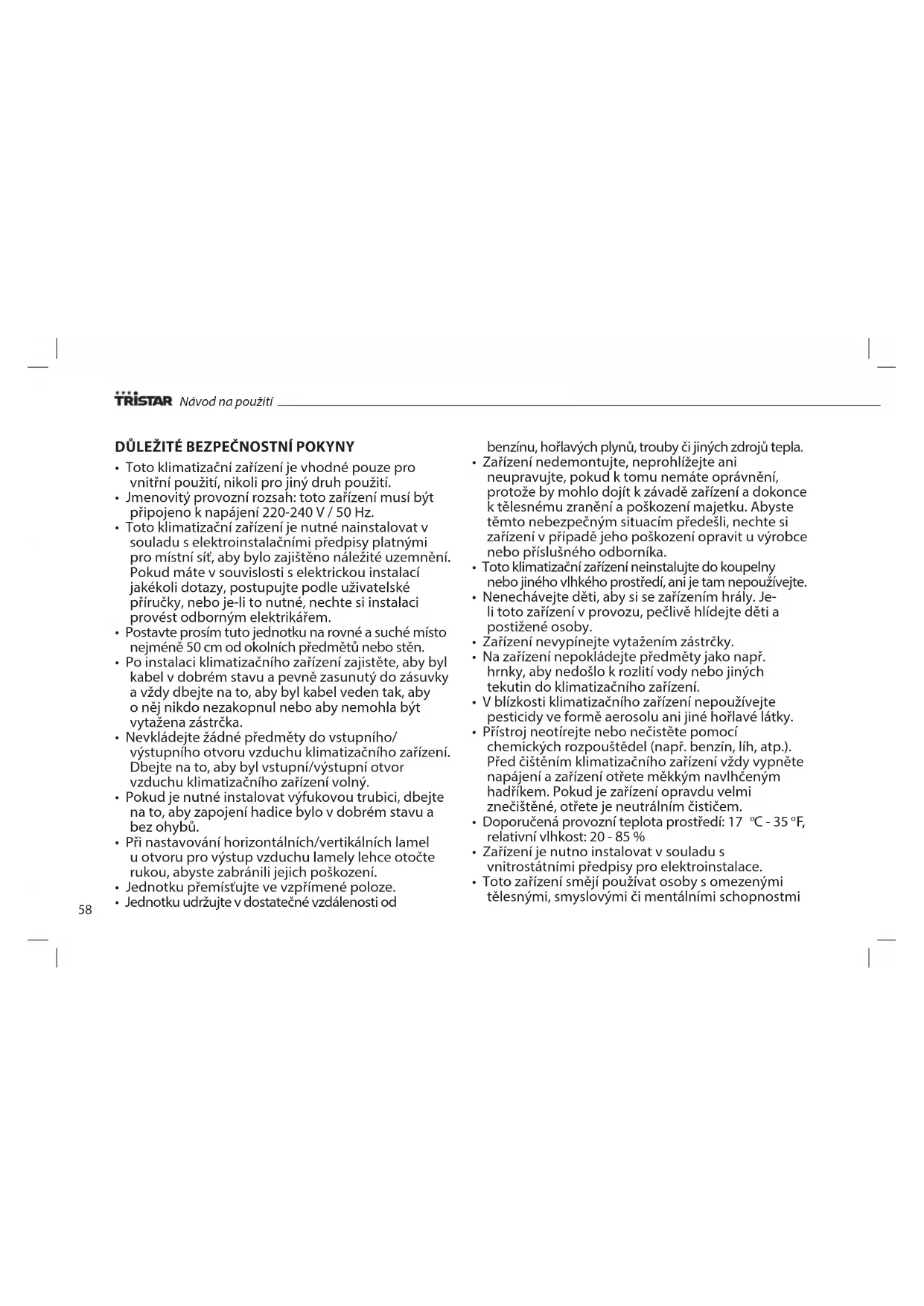 NÁVOD K OBSLUZE AC5521CH TRISTAR