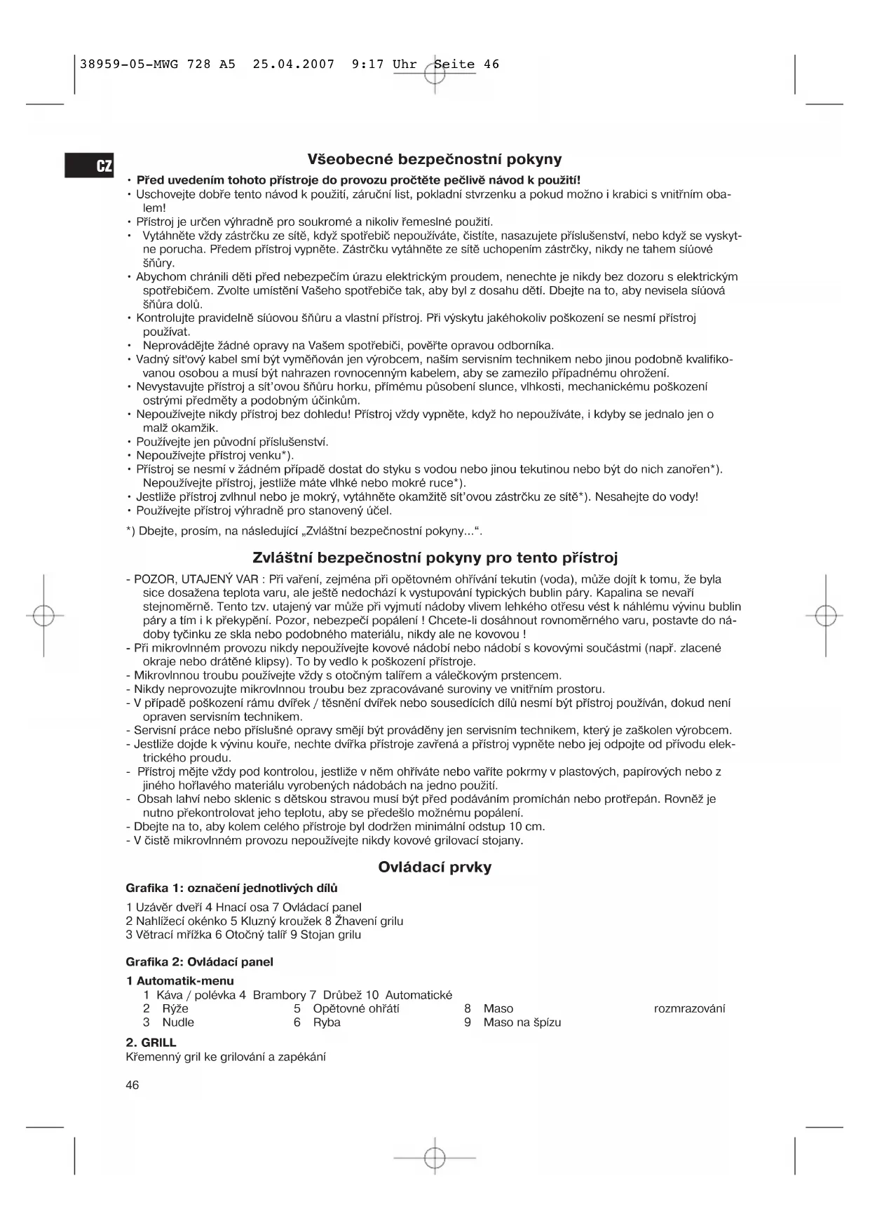 Křemenný gril ke grilování a zapékání 38959-05-MWG 728 A5 25.04.2007 9:17 Uhr Seite 4647