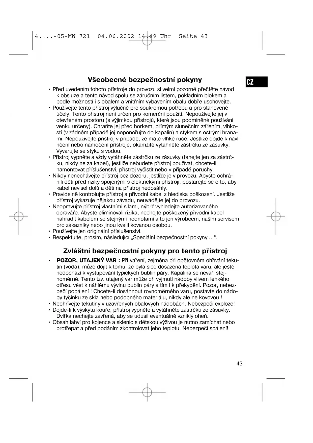 4....-05-MW 721 04.06.2002 14:49 Uhr Seite 42Všeobecné bezpečnostní pokyny