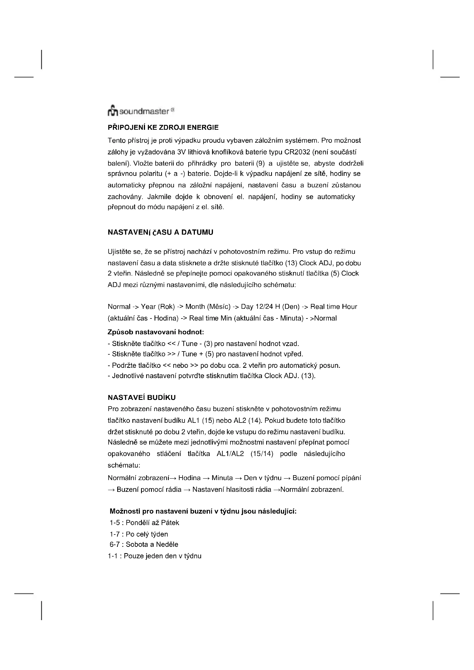 NÁVOD K OBSLUZE UR8400 Soundmaster