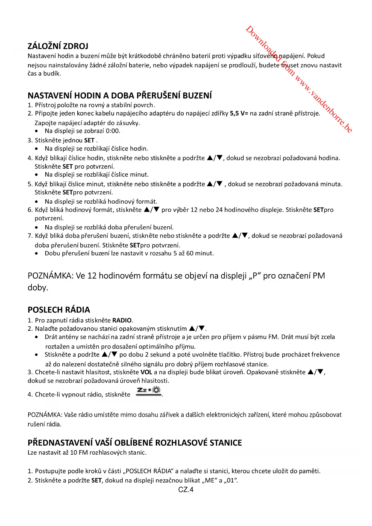 Downloaded from www.vandenborre.be CZ.5
