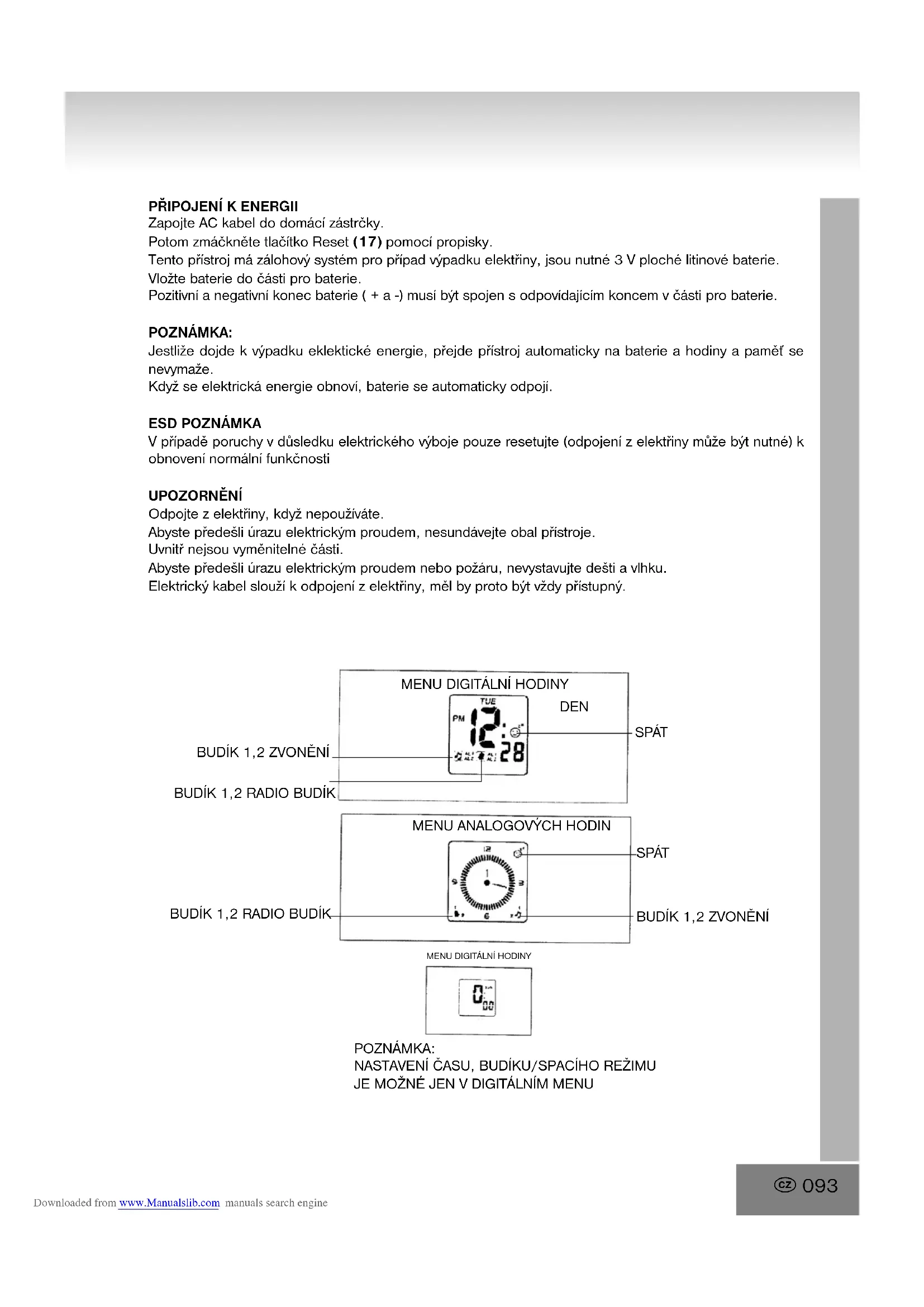 MENU DIGITALNÍ HODINY DEN BUDÍK 1,2 ZVONĚNÍ BUDÍK 1,2 RADIO BUDÍK MENU ANALOGOVÝCH HODIN SPÁT BUDÍK 1,2 RADIO BUDÍK BUDÍK 1,2 ZVONĚNÍ MENU DIGITALNÍ HODINYPOZNÁMKA: